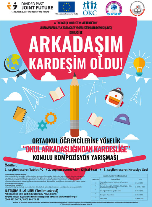 Uluslararası Büyük Eğitimciler ve Özel Eğitimciler Derneği’miz, Altındağ İlçe Milli Eğitim Müdürlüğü işbirliği ile (UBED) “Divided Past - Joint Future” adlı Avrupa Birliği programından "Göçmenlikten Kardeşliğe Eğitim Köprüsü" adlı projesiyle hibe almaya hak kazanmıştır.